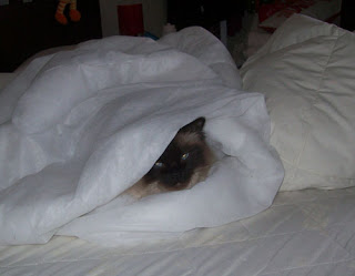 Finns det något mysigare än en säng med en katt på? Pyret gillar att ligga på sängen. Timotej och Blaizan ligger gärna under rostäcket :o)) Sötlökar ♥